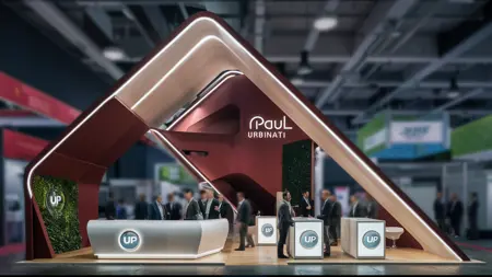 • 「[あなたのロゴ(言葉で)]」を[あなたの色]のLEDバックライト付きの現代的な2階層ブースを設計 • アクティビティと関与を示すためにビジネスパーソンを含める • VIPミーティング/ラウンジ用に部分的な2階層を備えた、開放的で明るいデザイン • 十分な頭上のスペースを持つ広々とした下層部 • 下層部の背面壁に、[あなたの画像説明]を表示する大型カーブ型LEDビデオウォール • 製品展示用の小型LEDディスプレイ、[あなたの画像説明]を表示 • フォーカスポイントとなる視覚的に印象的な階段 • [あなたの色]のLEDで照明された段差とガラス製手すり • 階段はブース全体の美観に統合 • 背景をぼかした現実的なトレードショーのコンテキスト • ブース構造のエッジ沿いに動的な[あなたの色]のLEDストリップ照明 • アンビエント照明と主要エリア用にカラーチェンジング[あなたの色]のLED照明器具 • カラースキーム:濃い[あなたの色]と明るい[あなたの色] • シックなアルミフレームと大型の[あなたの色]の曇りガラスパネル • 曇りガラスを製品情報/ブランドのプロジェクション表面として使用 • 下層部に「[あなたのロゴ(言葉で)]」をLEDバックライト付きのシックで照明されたカウンター • 全体に段差床システムを採用し、エッジに[あなたの色]のLEDストリップ照明 • 「[あなたの名前]」と1:50スケールを、プロフェッショナルな建築スタイルでタイトルブロックに記載 • ブースは展示施設のコンテキストに配置 • 背景に他のブースが見える • 視覚的な印象を強めるために、展示施設に焦点を当てた被写界深度