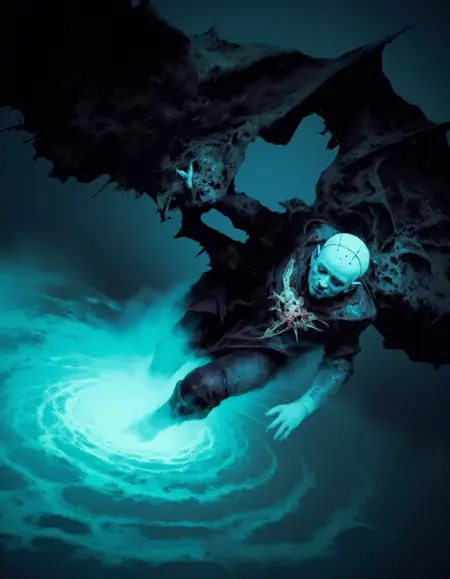 "Dismal: a gloomy eerie rather minimalist desaturated concept art style"