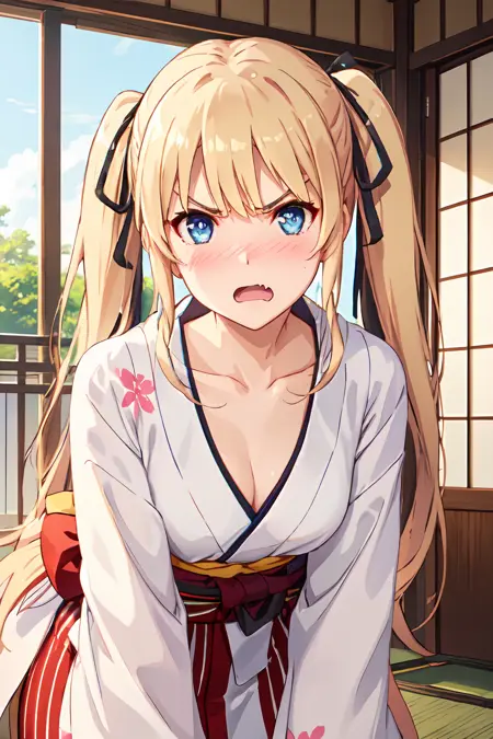 必要触发词: ph_eriri, sawamura spencer eriri, 1girl, blonde hair, blue eyes, twintails, solo, fang, long hair, hair ribbon, anime coloring, blush, bangs, black ribbon