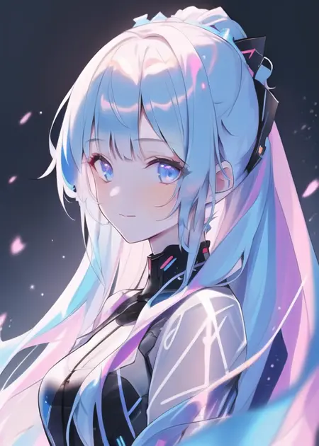 此模型强化了以粉、蓝、白为基调的全息色,在服装上的表现尤为显著,可以搭配极简朋克、未来主义、赛博朋克、机械外表等等科幻场景。