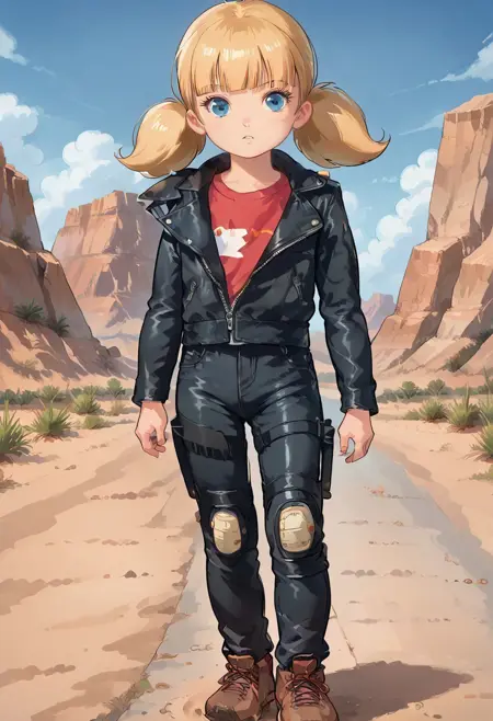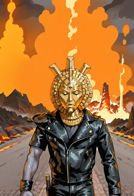 一个LoRA,让你为角色穿上《疯狂的麦克斯2:公路战士》中的夹克。这款夹克的多种变体已成为未来末日题材媒体中的标配,因此我决定让你能够生成穿着它的角色。请给我看看你用这个生成的图片。