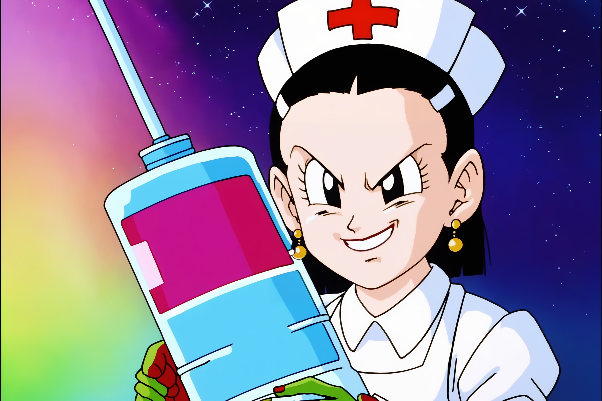 chi-chi, end of z, long hair, black hair, ponytail, black eyes, earrings, wrinkled skin, DBZ,