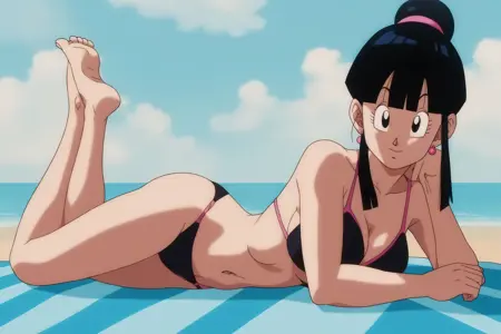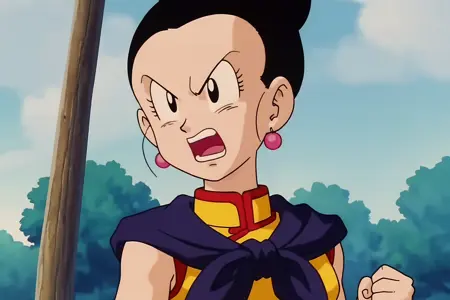 chi-chi, buu saga, single hair bun, black hair, hair pulled back, hair bun, black eyes, earrings, DBZ,
