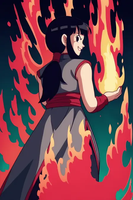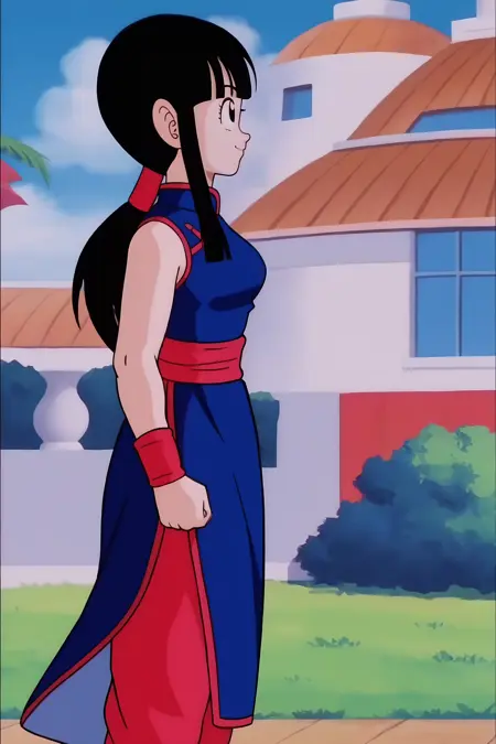 chi-chi, dragon ball \(classic\), long hair, bangs, black hair, ponytail, sidelocks, blunt bangs, black eyes,