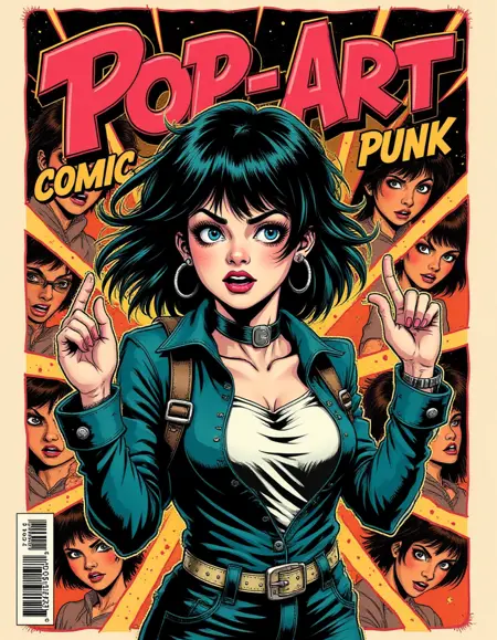 Neo-Pop Comic Punk is a cross between pop art and vintage comic book style with a bit of punk aesthetic. It features bold ink outlines, exaggerated expressions, and hyper-saturated colors, drawing from the visual vocabulary of comics while infusing it with a gritty twist. This style revels in sharp contrasts, with bright highlights and deep shadows that create dramatic, eye-catching compositions. Its subjects are larger-than-life and often framed in scenes rich with motion and emotion. Neo-Pop Comic Punk thrives on attitude, a vibrant palette, and crisp, illustrative details.
