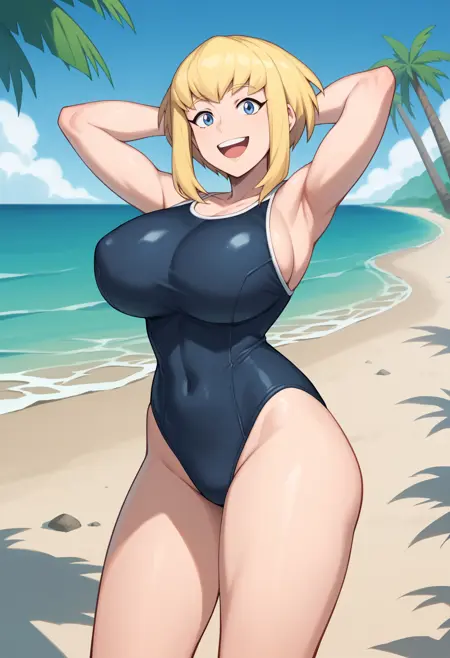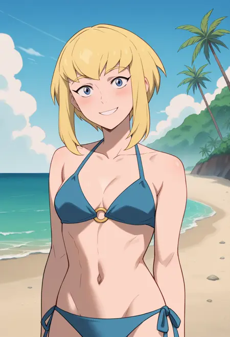 基础提示词:1girl, karazorel, blonde hair, blue eyes, short hair