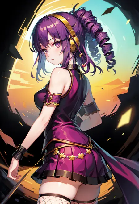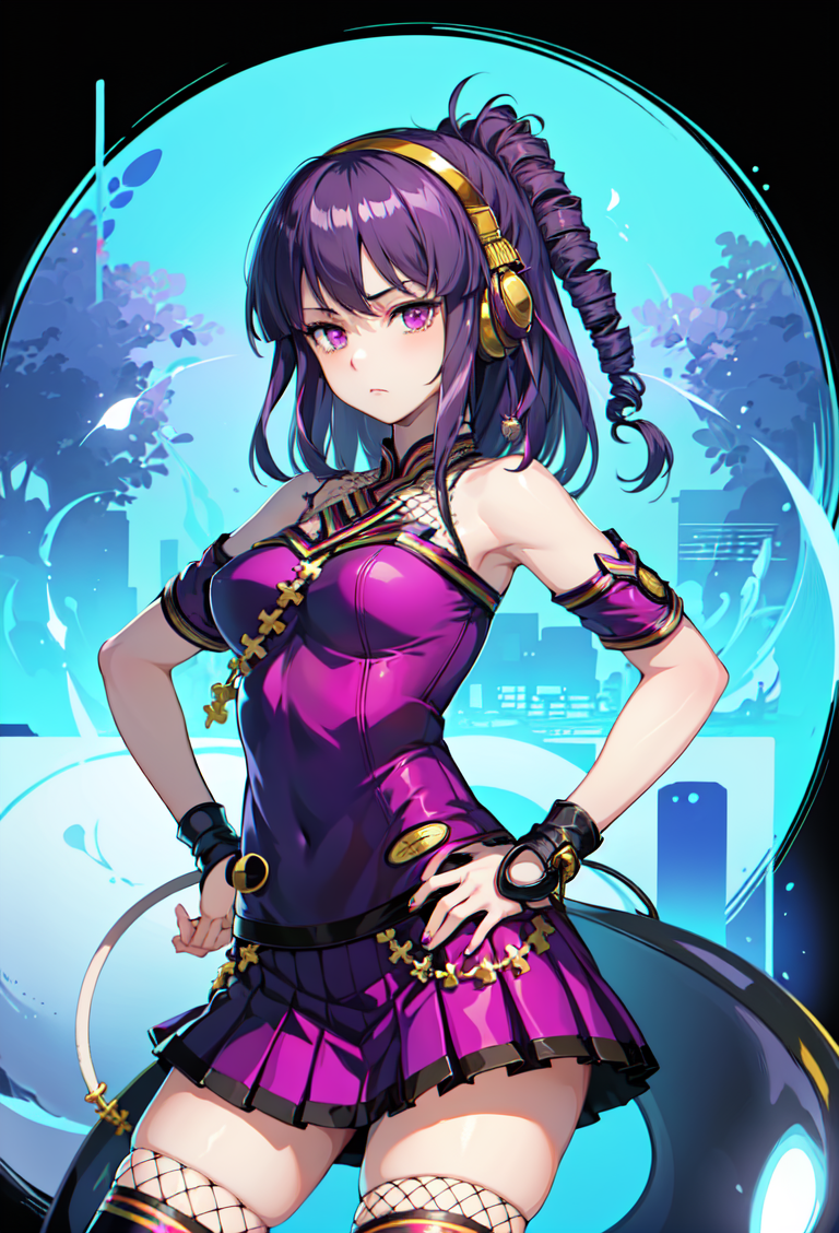 Appearance tags: purple eyes, purple hair, drill hair