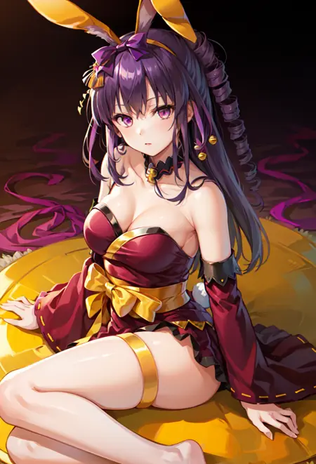 Clothes from PBS figure: figure clothes, thigh strap, rabbit ears, detached sleeves, wide sleeves, sash, bare shoulders, hair ornament, bow