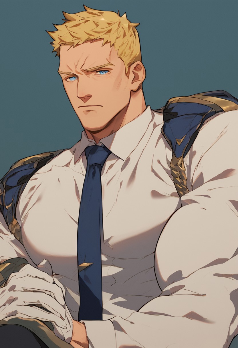 - 生成他的班级主席:76服装 - soldier: 76 \(class president: 76\) \(overwatch\),短发,金发,蓝眼睛,眼镜,蓝色夹克,红色领带,白衬衫,黑色长裤,棕色便鞋