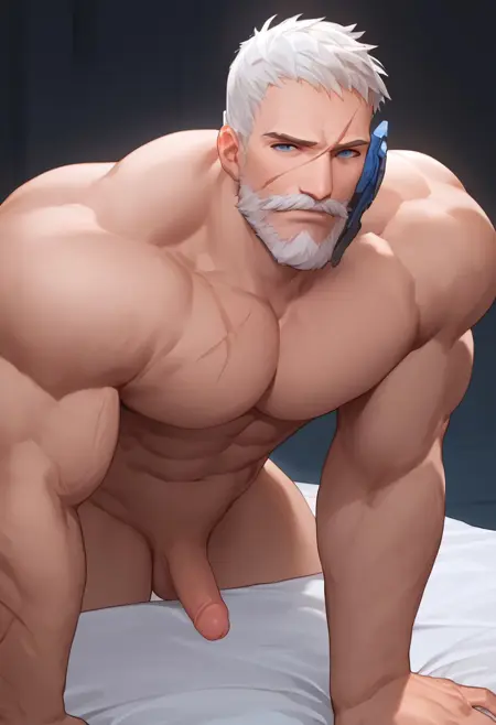 - 生成《守望先锋2》士兵:76艺术 - soldier: 76 \(overwatch\),new76,极短发,白发,蓝眼睛,面部毛发(胡茬),胡子,脸上有疤痕,夹克,黑色长裤,手套,靴子,面罩