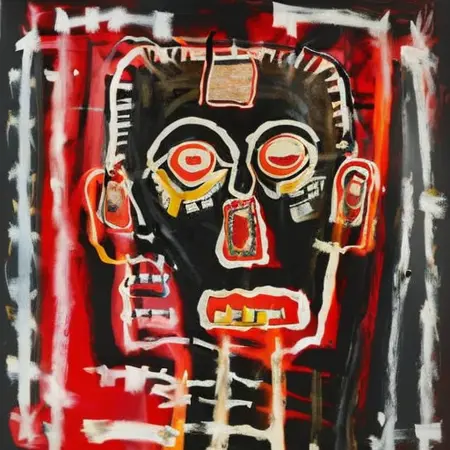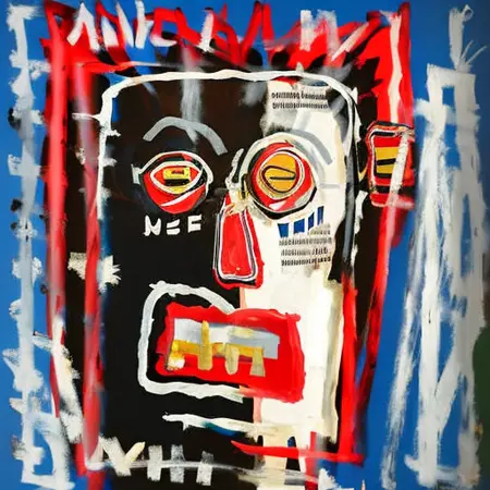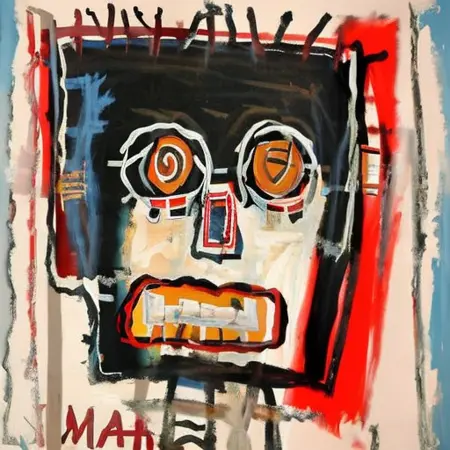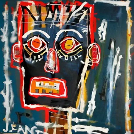 This style is based on the works of Basquiat, where he depicts abstract and deformed faces in a very colorful way.