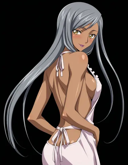 베이스 (포니테일): villetta_nu, 검은 피부의 여자, 노란 눈, 회색 머리, 긴 머리, 립스틱, 포니테일