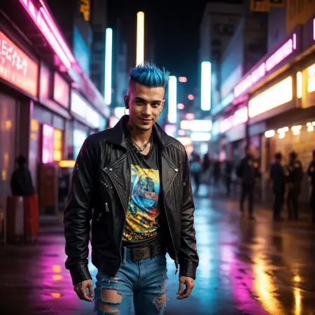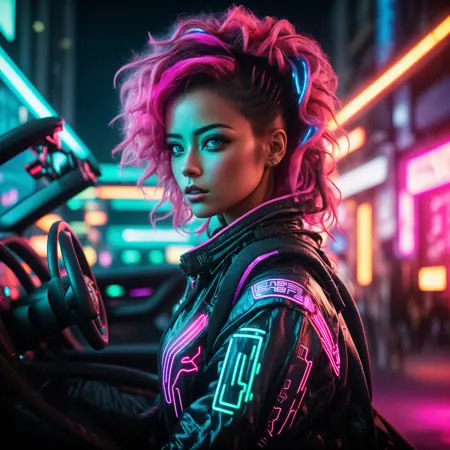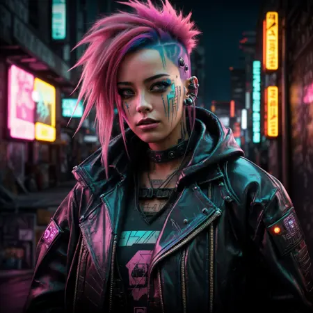 "CyberPunkV2" LoRA를 소개합니다. 이 LoRA 모델은 이미지에 생동감 있는 사이버펑크 스타일을 더해줍니다.