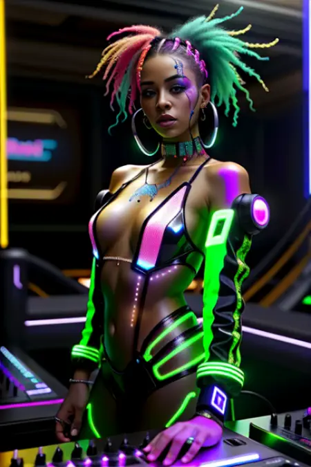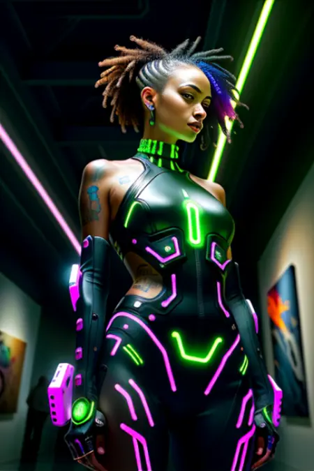 この多目的なLoRAモデルは、サイバーパンクの美的感覚を生み出すだけでなく、特定のプロンプトスタイルともシームレスに統合され、あなたの芸術的ビジョンをさらに高めます。提供されている画像例をご覧になり、CyberPunkV2 LoRAで達成された鮮やかな結果をご確認ください。