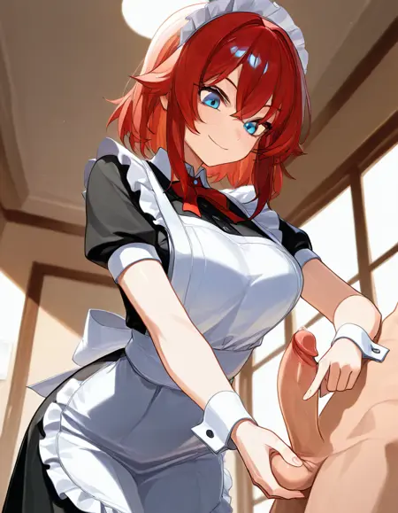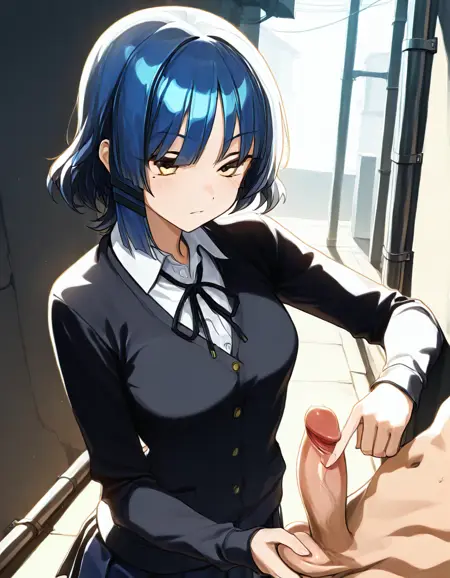 tesgrb, testicle grab, (handjob:1.4), leaning forward, penis