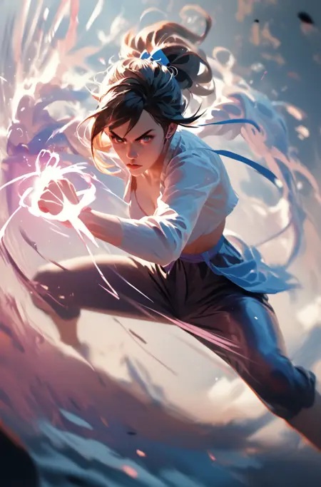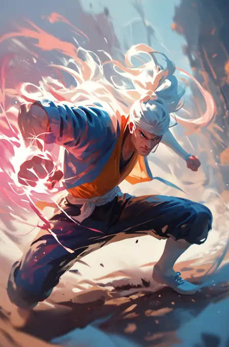Pony can do fighting stance pretty well; this just add more dynamic lighting and vfx to the results (weapons depends on checkpoint). However, the results are quite different across different checkpoints, so I would recommend using my checkpoint (yomama 2.5D) if you like the style I posted here.