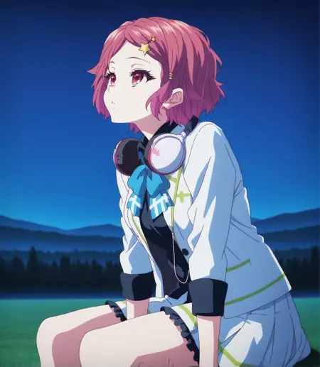 • 睫毛、短发、发饰、红眼睛、红发、发夹、星星(符号)、耳机、星形发饰、挂在脖子上的耳机
