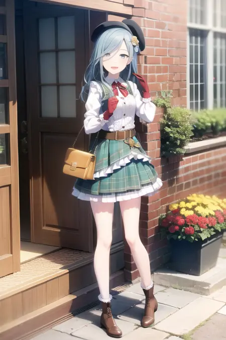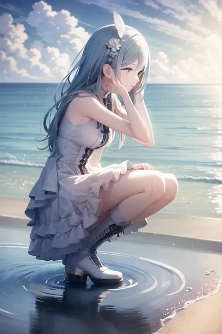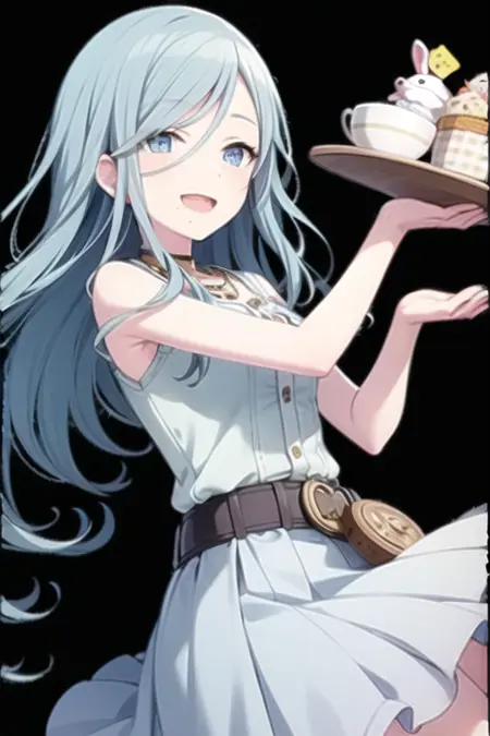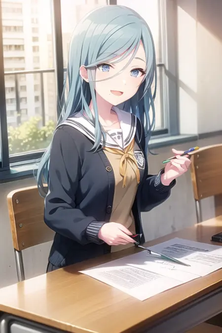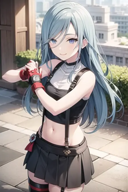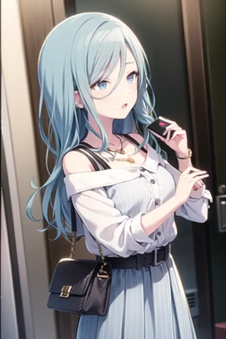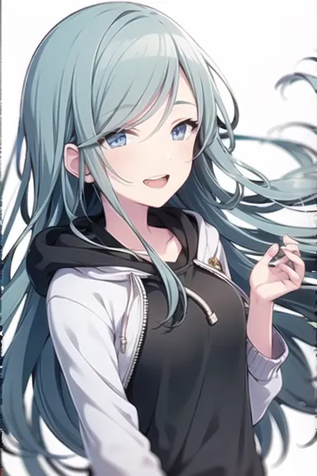 1girl, long hair, blue hair, blue eyes, small breasts, mole, mole under mouth