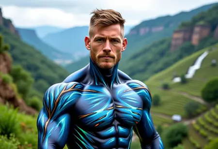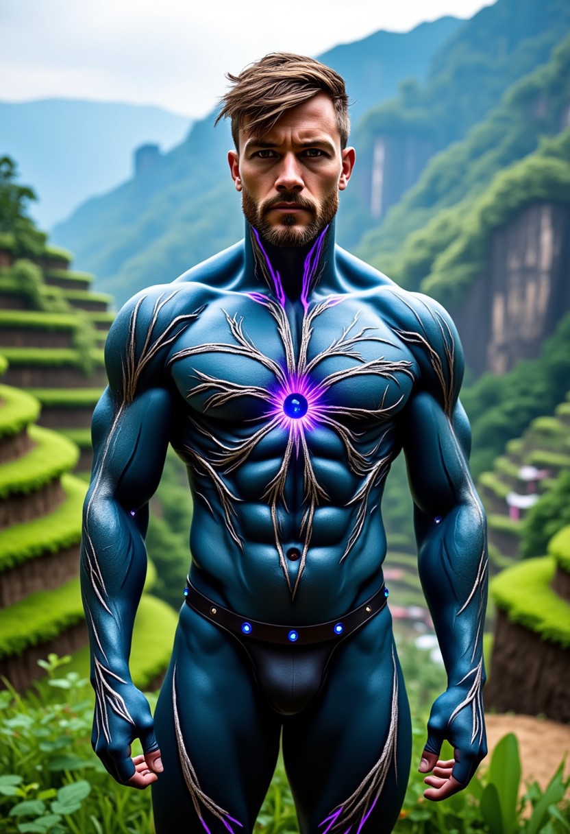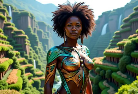これは芸術と高度なパーマカルチャーに焦点を当てたモデルです。段丘谷、未来派建築、アート、ファッション、モデル、ボディペイントなど...
