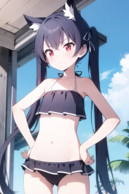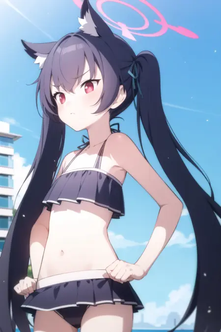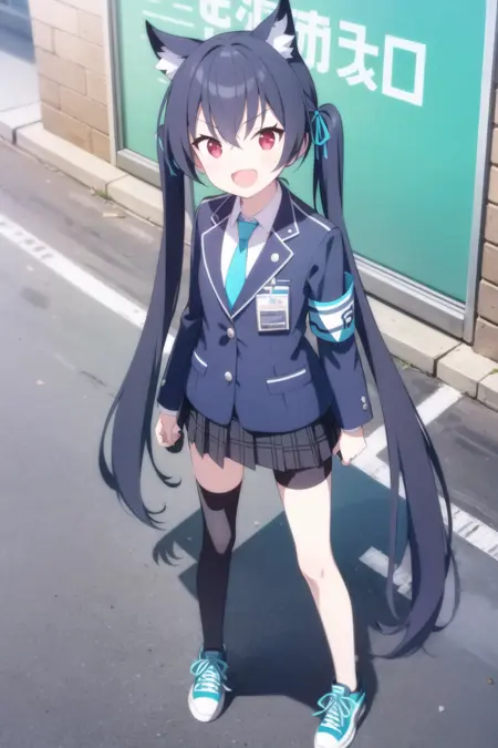Weight 1 works well. Prompting; baserika, twintails, long hair, hair ribbon, red eyes will trigger her general appearance. baserika is the trigger token, but unfortunately this LoRA needs a little extra.
