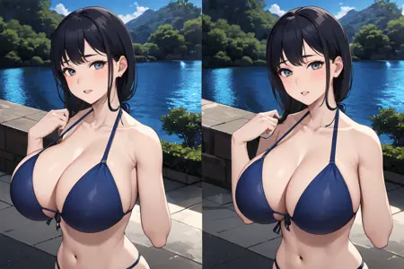 建议包含如闭嘴、张嘴、微张嘴唇等关键词,以使左右图像中的嘴部表情保持一致。