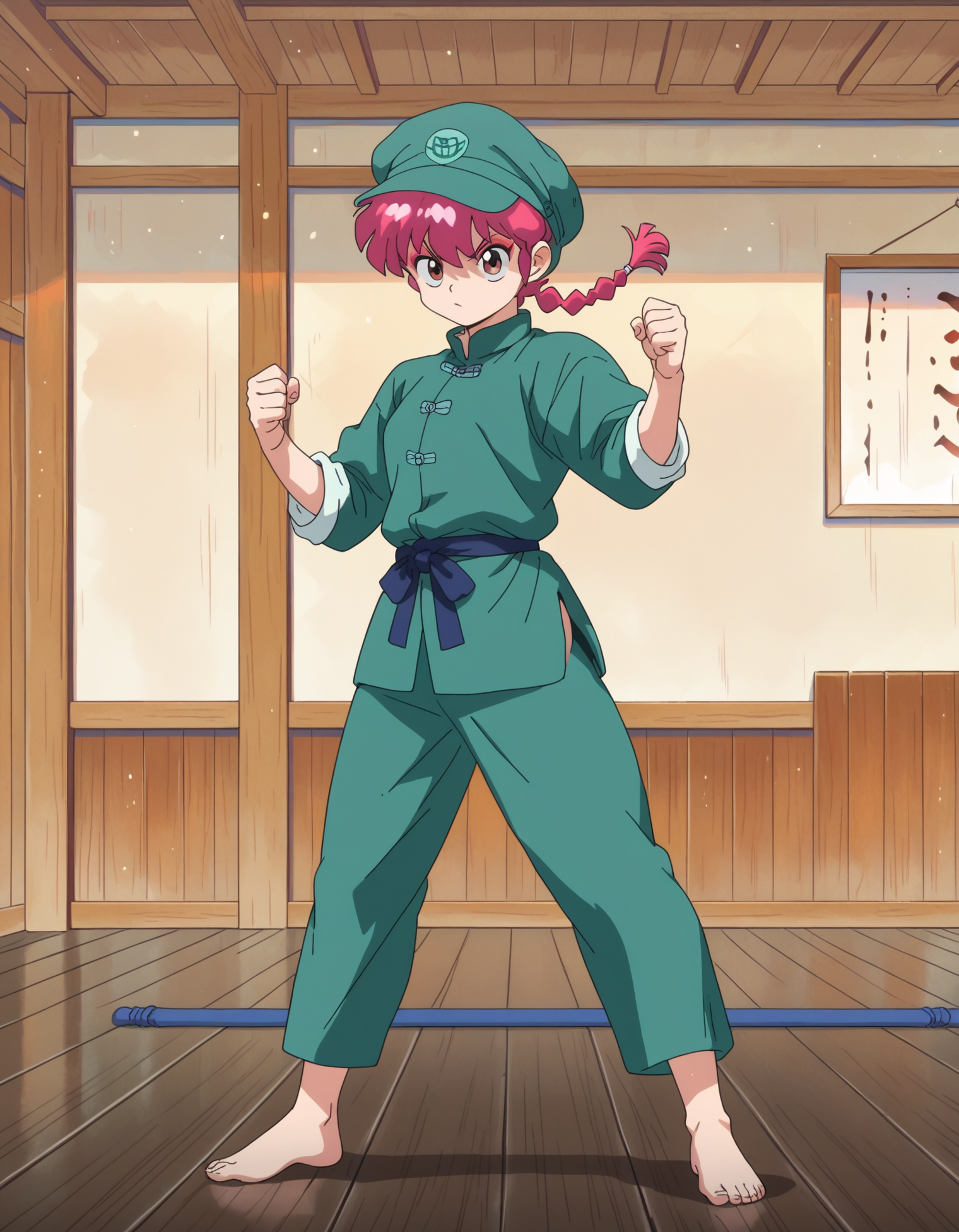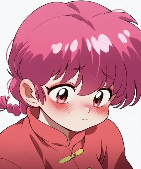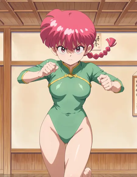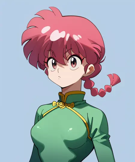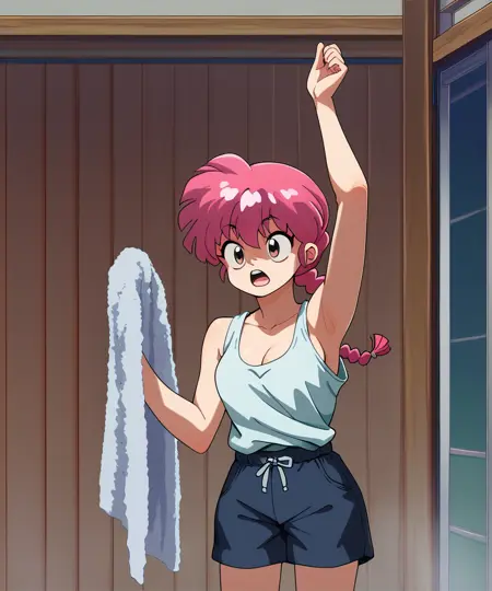 Score_9, score_8_up, score_7_up,ranmare, ranma_girl, pink hair, 1girl, braid, solo, open mouth, breasts, pink hair, braided ponytail, cleavage, tank top, towel, single braid, shorts, shirt, casual++ Score_9, score_8_up, score_7_up, ranmare, ranma_girl, ranmma_leotard+++, upper body+, eyeliner+, 1girl, braid, solo, red hair, chinese clothes, braided ponytail, single braid, anime coloring