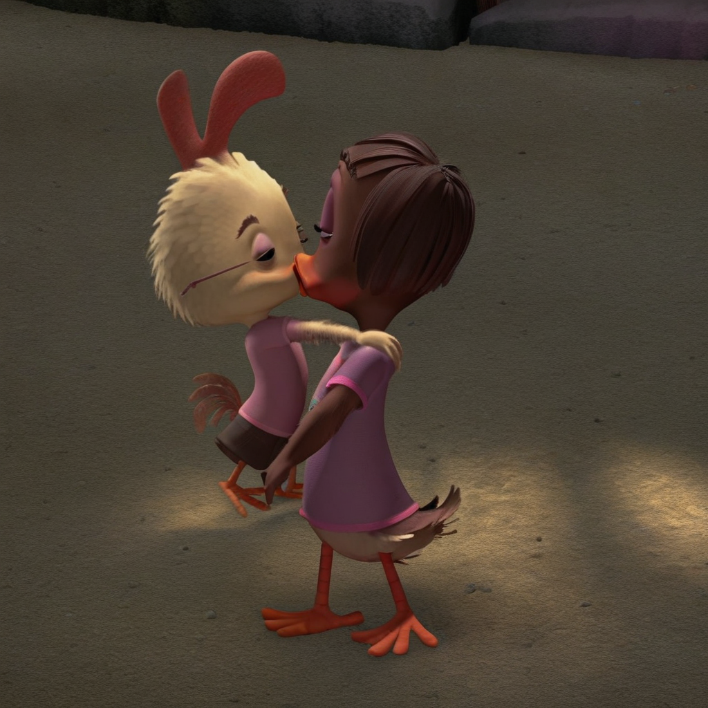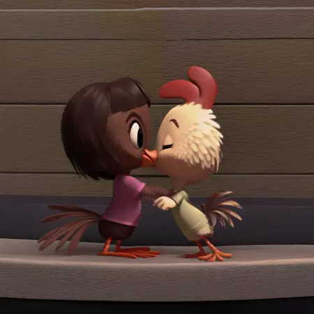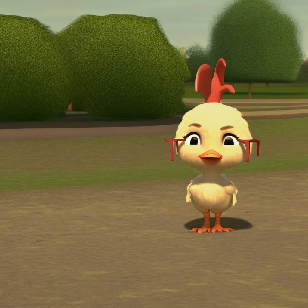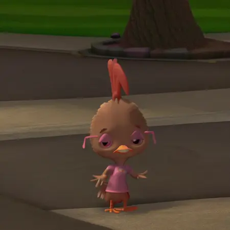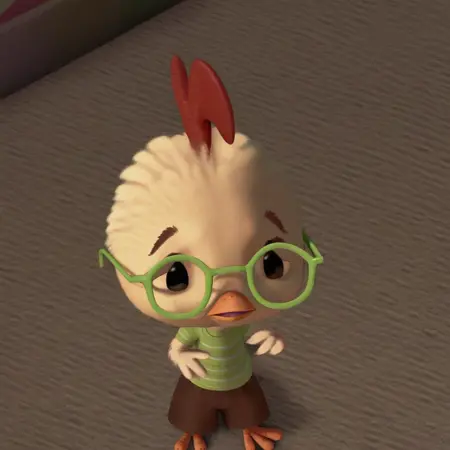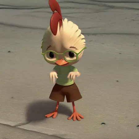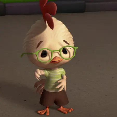 Chicken_Little,鸡,拟人化,羽毛,1个男孩,黑眼睛,绿色眼镜,条纹衬衫,棕色短裤,体型娇小的男性,喙,内裤,折纸纸短裤,艾比·马洛德