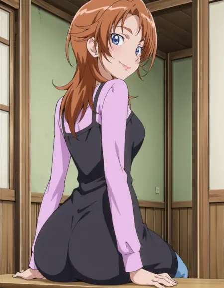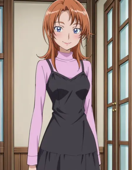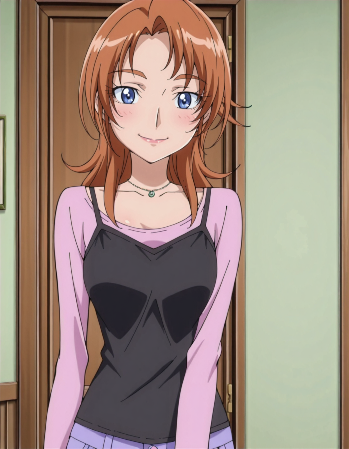 score_9, score_8_up, score_7_up, 动画截图, 单人, 1女孩, houjoumaria, 长袖, 粉色衬衫, 黑色吊带, lora:houjoumaria:0.8