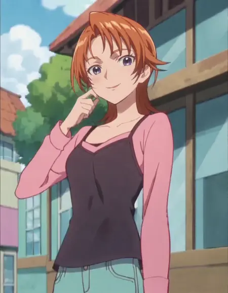 score_9, score_8_up, score_7_up, 애니메이션 스크린캡, 솔로, 1소녀, houjoumaria, 긴 소매, 분홍색 셔츠, 검은 캐미솔, lora:houjoumaria:0.8