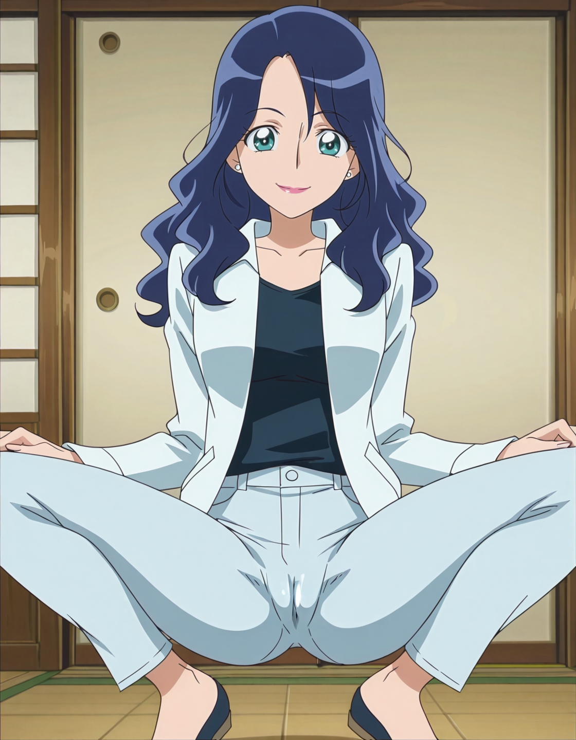 score_9, score_8_up, score_7_up, 动画截图, 单人, 1女孩, kurumisakura, 化妆裤, 微笑, 实验室外套, lora:kurumisakura:0.8