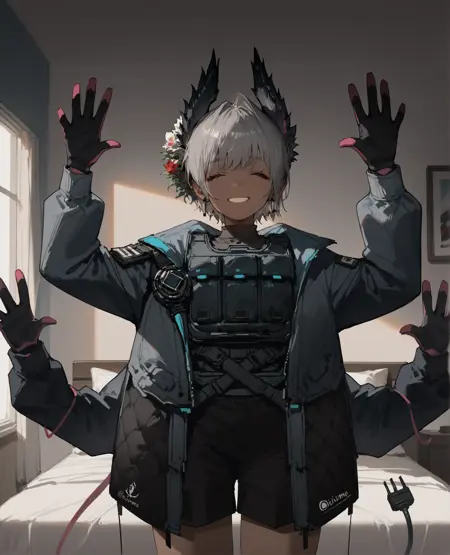 gloves, jacket, bodywear, tactical vest, shorts, earrings,