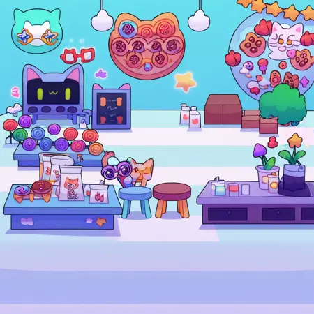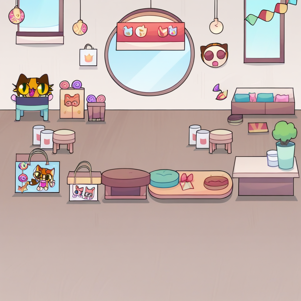 이 모델은 만화풍 스타일의 오브젝트와 아이템을 포함한 귀여운 인테리어를 생성합니다. 이 모델은 저희 게임의 아트워크로 학습되었습니다.