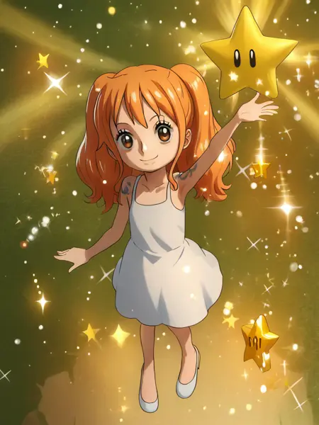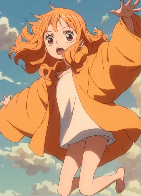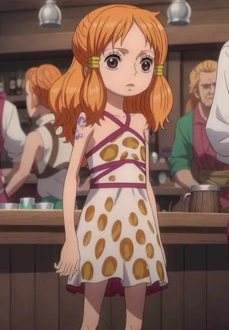 흰 드레스 버전의 LoRA를 누군가가 만들었다는 것을 보고, "작아졌을 때 그녀도 다른 옷을 몇 벌 입지 않았을까?" 라는 생각이 떠올랐다. 그래서 이 LoRA에는 바 옷과 전투 복도 포함되었다. 일반적인 나미의 LoRA를 추가하여 이 옷들도 적용하는 건 꽤 쉬울 수 있지만, 아직 시도해보지 않았다.