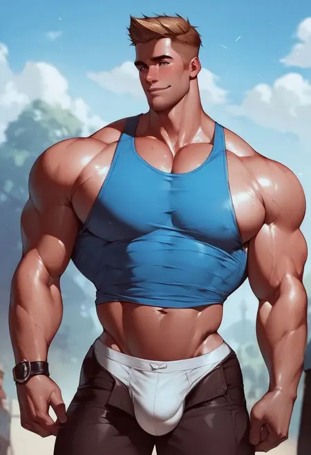 매우 근육질의 남성들을 생성하는 Absolutbleu 게이 아트 스타일. 큰 가슴, 엉덩이, 허벅지와 가는 허리. 또한 더 "일반적인" 신체 유형도 생성할 수 있음.