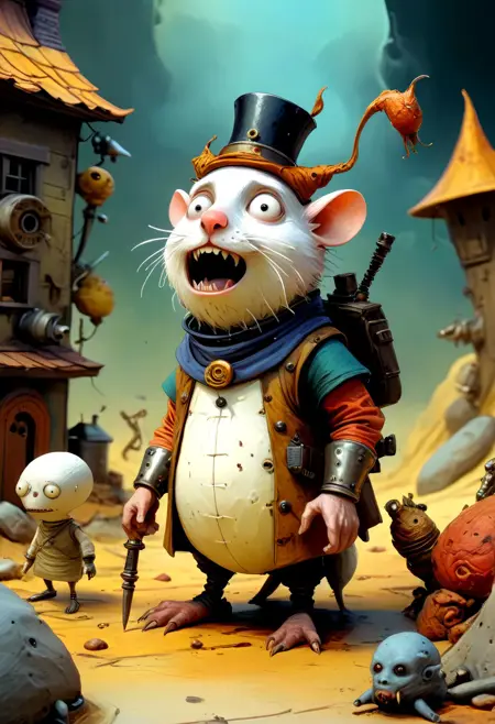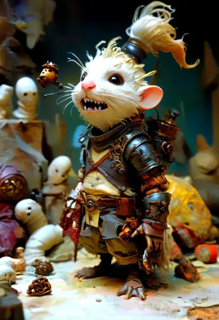 Moutarde_V01, ( Mustard in French ) excels at moving from precise, fairly flat lineart to a stop-motion rendering made from scraps and bits of string, with a vibrant rendering. It's a great LORA for Cheyenne! In my tests, it extends over a wide spectrum ( -3 / 3 ) and some of the results are incredible !