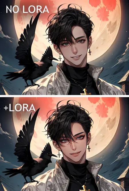 创建优雅的动漫男性角色。在某些检查点中会显著影响风格,而在某些则不会。我建议使用0.3-0.8。