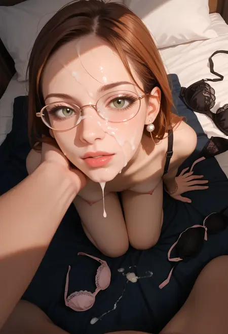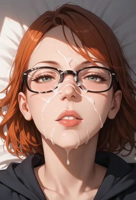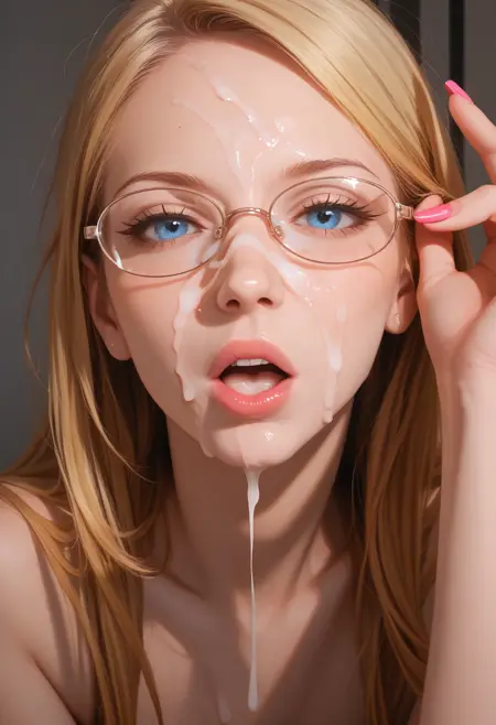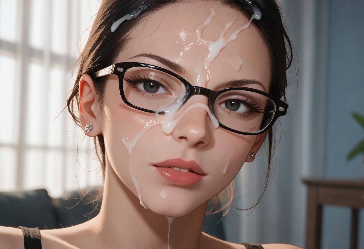 권장 태그: 1girl, solo focus, glasses, cum, hetero, eyewear, facial, lips, bukkake