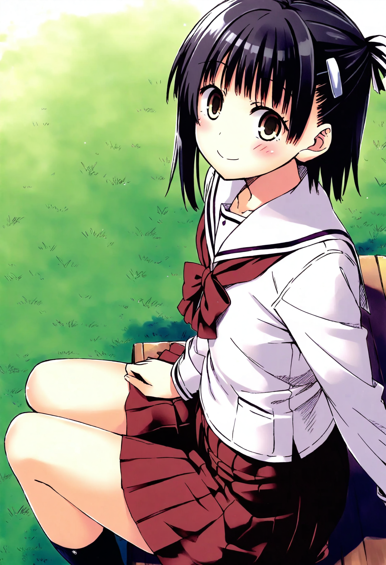 학교 유니폼, 주름 치마, 세라푸쿠, 머리 장식, 긴 소매, 양말, 신발,