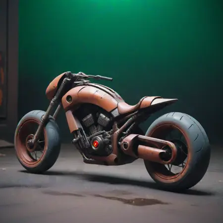 尝试使用 0.1-1 左右的权重(较低值倾向于生成现代自行车或电动自行车,较高值倾向于生成科幻风格摩托车)、CLIP SKIP 1-2(某些风格化模型中,2 效果更好)。该模型使用 bike 标记(建议尝试组合如 bike|scooter、vehicle|bike 等)。它还能对混合交通工具进行风格化处理。