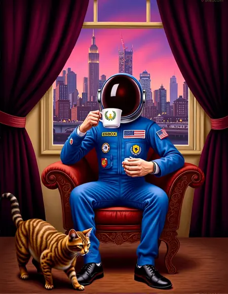 他的画作以细致入微的细节处理和鲜艳的色彩运用为特征。格罗斯常融入复杂的图案、丰富的纹理和多层次的构图,创造出视觉上引人入胜且叙事复杂的画面。