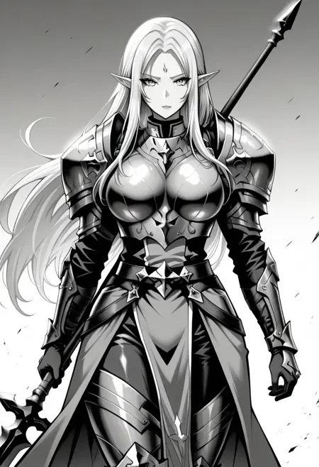1. monicch001, armor, shoulder armor, gloves, pauldrons, weapon, holding, polearm, spear,