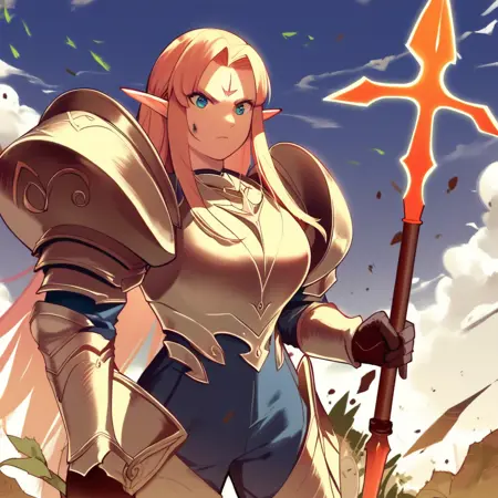 monicch001, armor, shoulder armor, gloves, pauldrons, weapon, holding, polearm, spear,