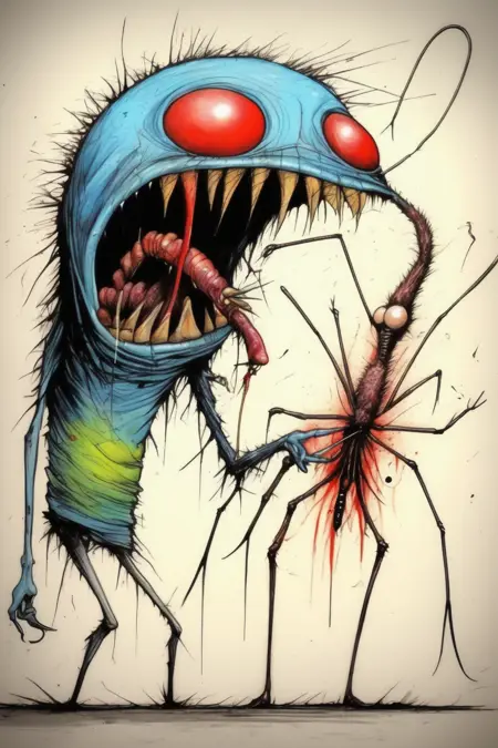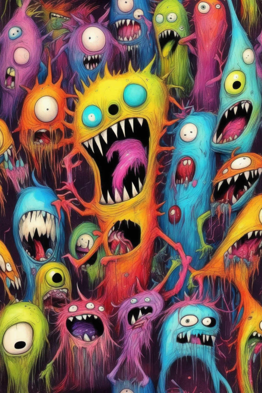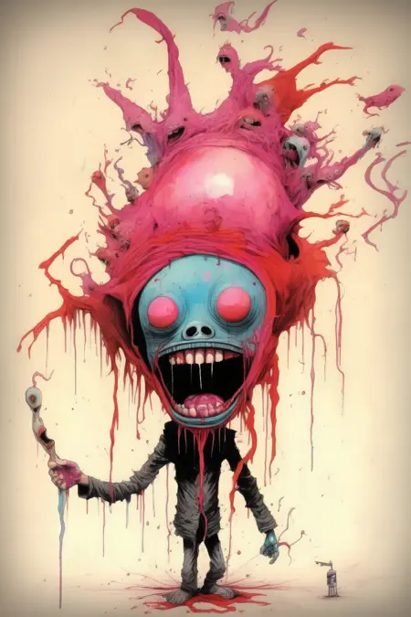 他运用大胆而鲜艳的色彩,创造出视觉冲击力强、引人注目的构图。帕迪对细节的专注和精细的线条为作品增添了深度与质感,强化了其超现实与噩梦般的氛围。