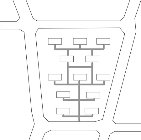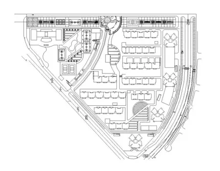 add detail:a plan of a city with lots of buildings and a lot of trees in it, and a lot of parking lots(things like this)