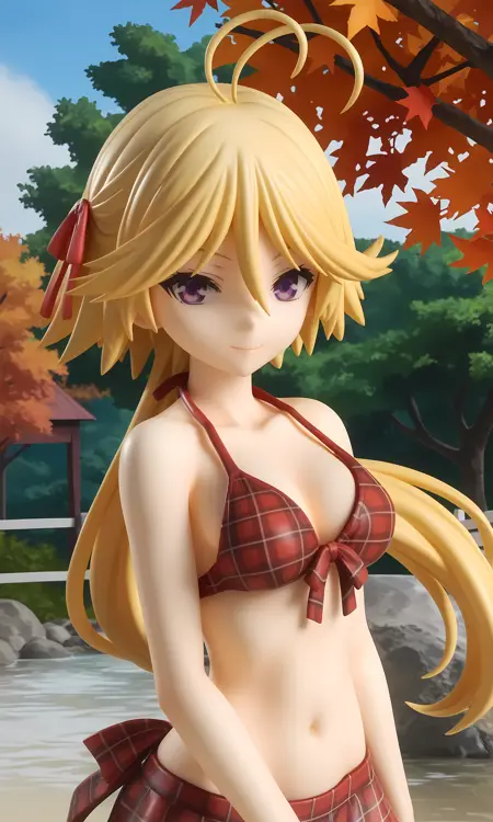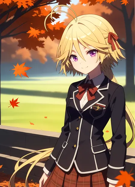 外見 → ohwx、blonde_hair、purple_eyes、long_hair、short_hair、antenna_hair、ahoge、hair_between_eyes、very_long_hair、ponytail、breasts、hair_ribbon、