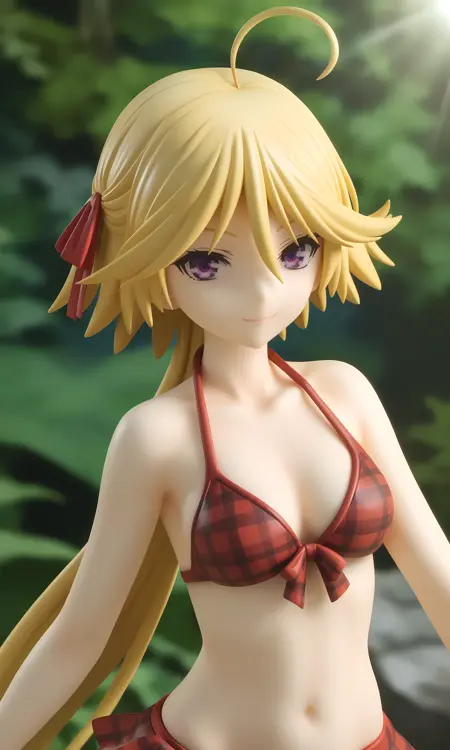 服装4 → 泳装, 比基尼, 格子, 裙子, 丝带, 红色比基尼,