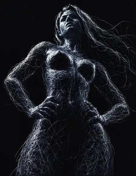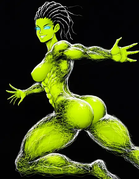 Use these triggers: Scribble style, black background, "your color" theme, naked body,