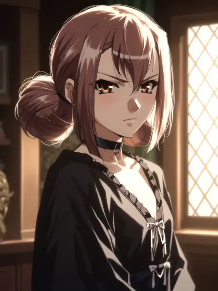 purple dress, cleavage cutout, bare shoulders, detached sleeves, hat - 着物: