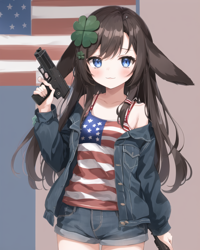 有时模型需要一些引导,因此请添加“耳朵”、“黑色上衣”、“露肩”和“长发”或“低双马尾”。
