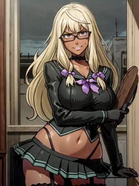 This lora is D5, the only brown/gyaru girl from the valkrie drive mermaid. appears on the last two episodes on the anime. there is little to no fanart of her on online, nothing in any of the boorus. i hunted for images everywhere, and only found a single concept art from the BD VOL 6 booklet. Thank the heavens for the stable diffusion and the ability to make loras of characters. had to rewatch the anime just to get screenshots for training.